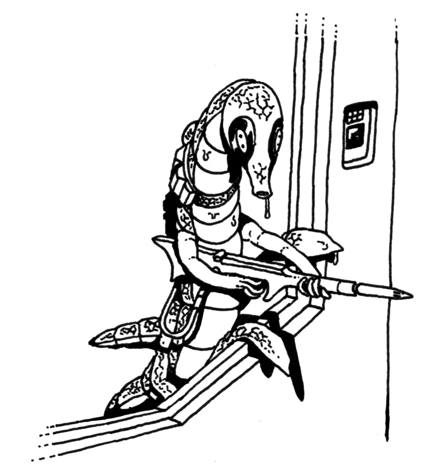 Sathar also are known to use Dralasite, Human, Vrusk and Yazirian agents to overthrow Frontier governments, terrorize citizens and disrupt trade. Like the Sathar themselves, these agents are extremely dangerous. Suspicious beings should be reported immediately. Citizens are discouraged from attacking Sathar agents, as most are trained and experienced killers.